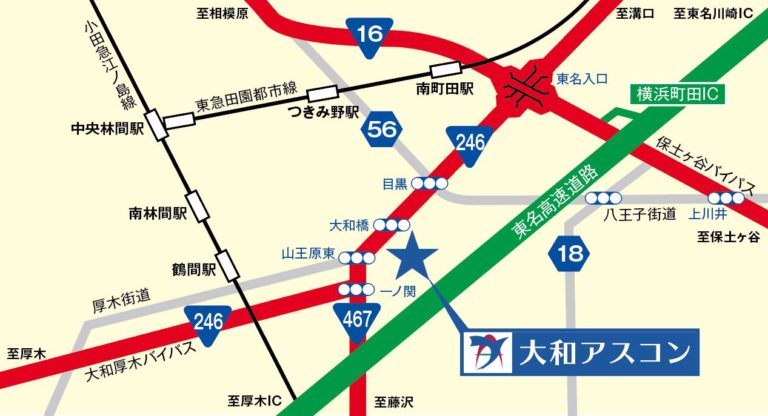 ・お車の方:国道246号線 厚木方向 大和橋交差点を斜めに左折